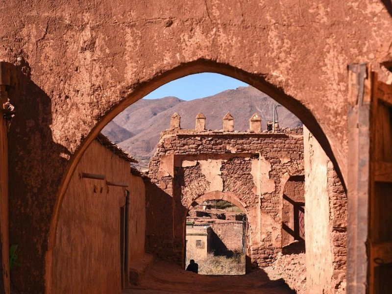 This day, after breakfast, on the road to Marrakech, you will explore the Ksar Ait Benhaddou, a UNESCO World Heritage site. Once an important hub on the caravan route linking the Orient and sub-Saharan countries to Morocco, Ait Benhaddou has also become a major filming location for many great films distributed worldwide. You will continue the journey on the old caravan route to Telouet for a visit of the ancient kasbah of Glaoui, and Old palace of the powerful tribe of Glaoui, somewhat neglected because of the not very glorious past of this tribe which collaborated with foreign protectors from 1912 until the independence of Morocco. After lunch, drive towards Marrakech via the famous Tizi N'Tichka pass (2260m) in the High Atlas and a stop at the terrace of a cafe overlooking impressive panoramas. Arrival in Marrakech at 6pm, dinner and overnight in the riad.